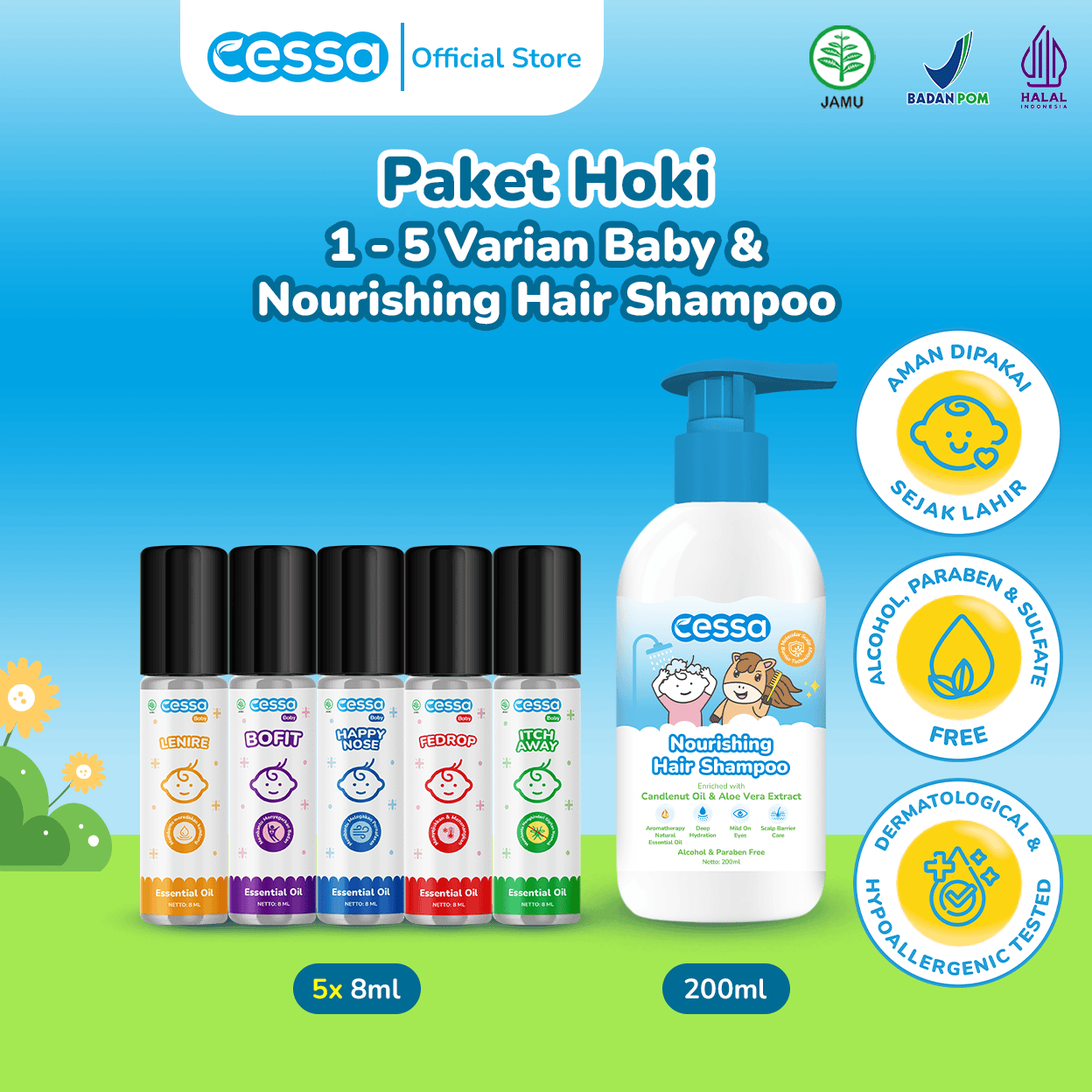 Cessa Nourishing Hair Shampoo diformulasikan dengan Molecular Scalp Barrier Technology dan 4X Growth Support Booster Formula untuk merawat kulit kepala yang tipis dan sensitif, menjaga kebersihan rambut secara menyeluruh, serta mendukung pertumbuhan rambut yang sehat. Diperkaya dengan 11x Hyaluronic Acid & Ekstrak Avocado untuk membantu melembapkan, menghaluskan, dan membuat rambut anak lebih mudah diatur serta tampak berkilau.