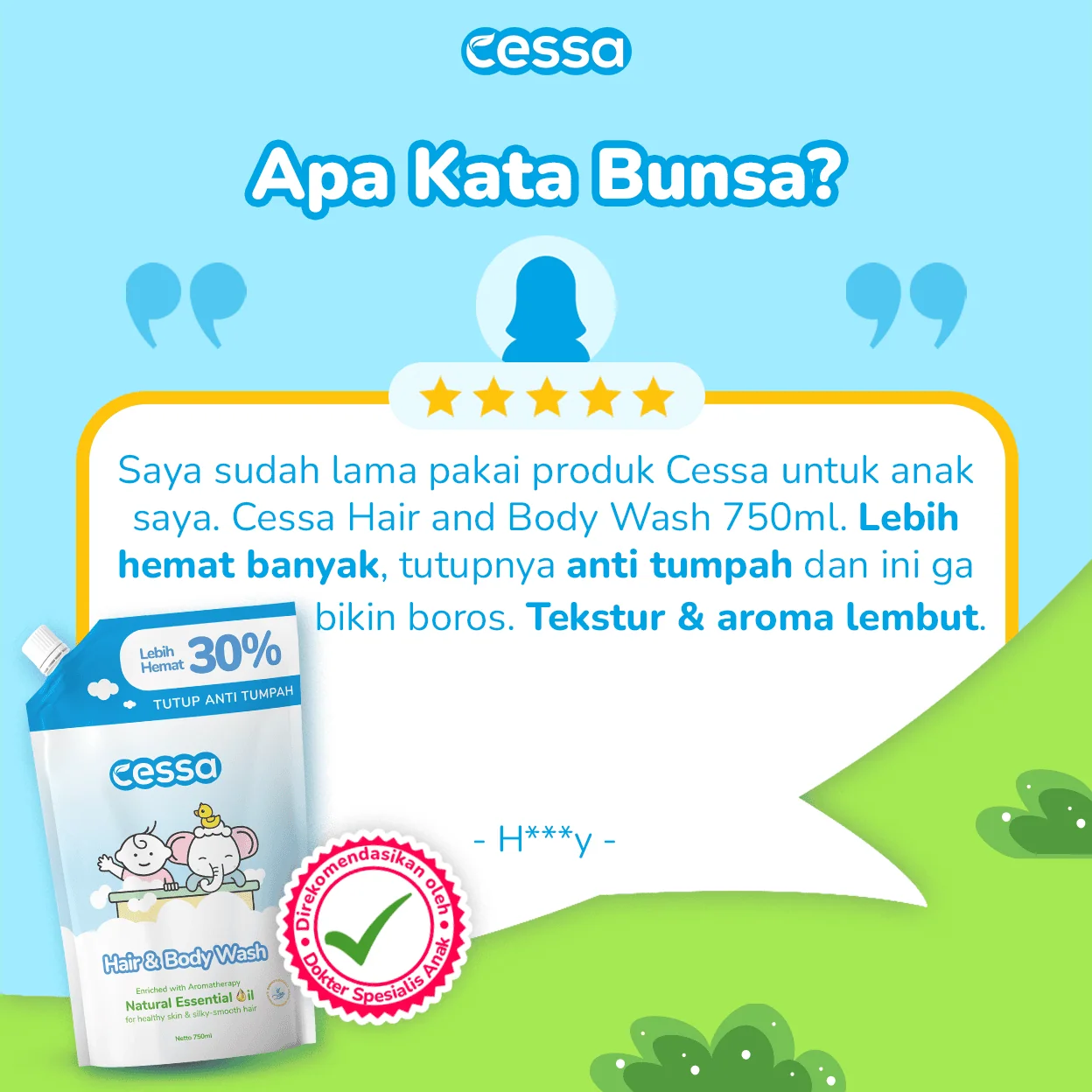 Rasakan sensasi mandi BARU yang menenangkan dan relaxing dengan aromaterapi Essential Oil Alami Cessa setiap hari. Terinspirasi oleh kebaikan alam, menjadikan momen mandi bersama Si Kecil terasa hangat dan menyenangkan.