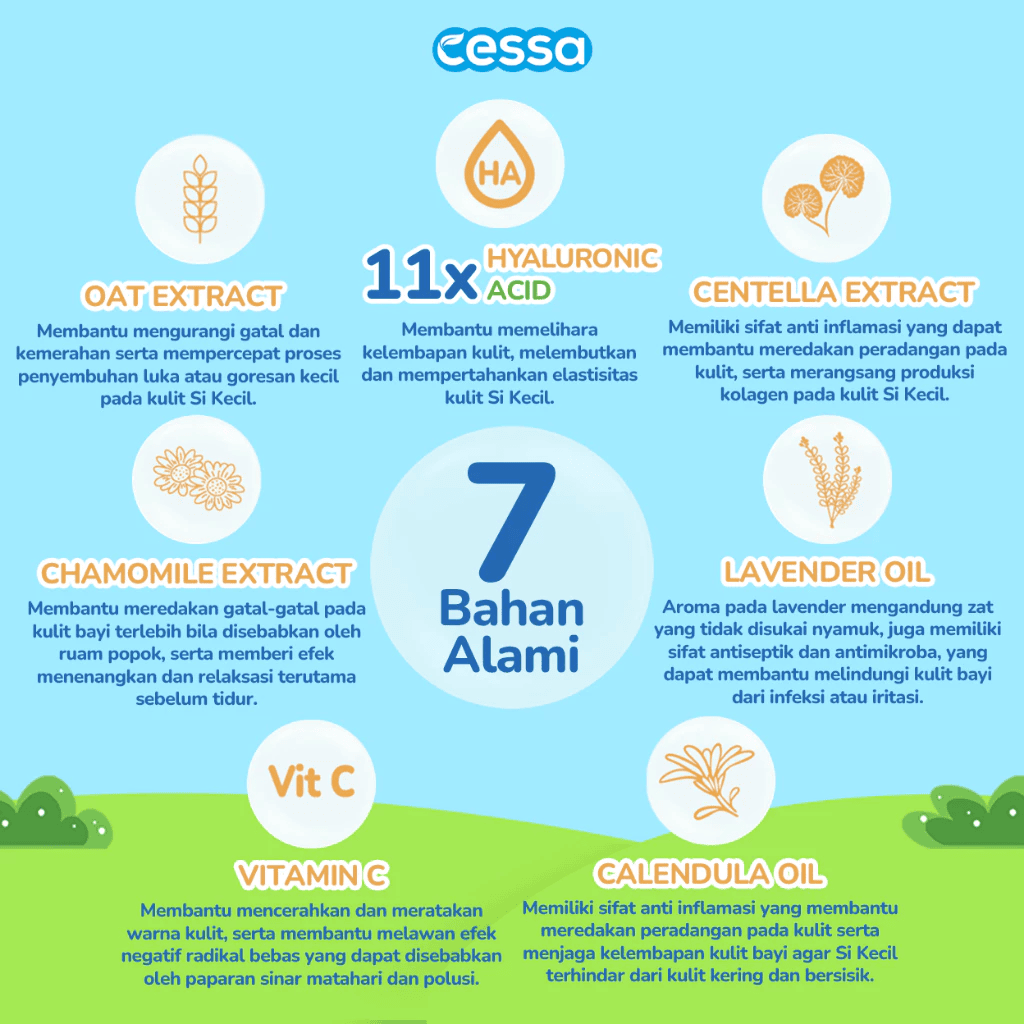 – Melembapkan dan melembutkan sekaligus mempertahankan elastisitas kulit si kecil